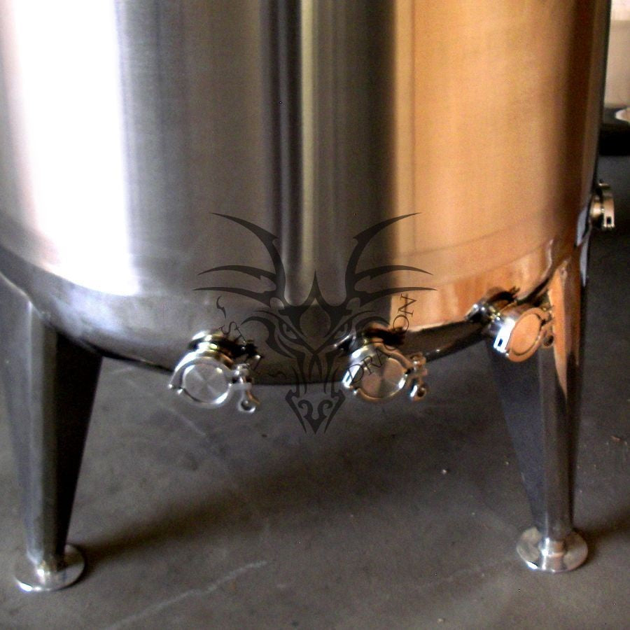 380l working capacity tank has 300mm glass topped manway, 2 x 50mm ports and 1 x 200mm port on top, 6 x 50mm element ports, 50mm heavy duty sight glass with spare lens and 1 x 50mm butterfly valve drain in the base. Adjustable levelling feet. All 304 grade.